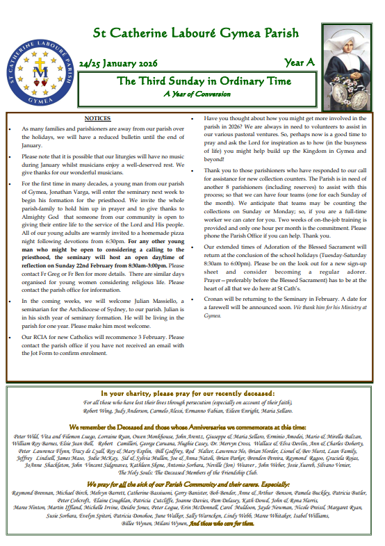 Contact Parish office for older bulletins